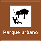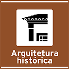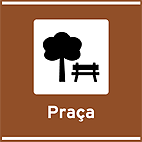Exemplo de compatibilização entre placa de orientação turística e placa de orientação de destino